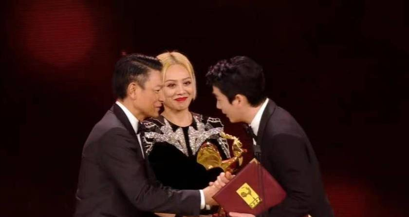 他平复了一会心情后,带着其他人的祝福上台领奖。