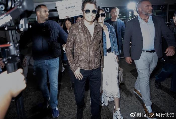 巩俐和法国老公抵达戛纳气场太牛了!穿白裙扮嫩,74岁老公超帅气