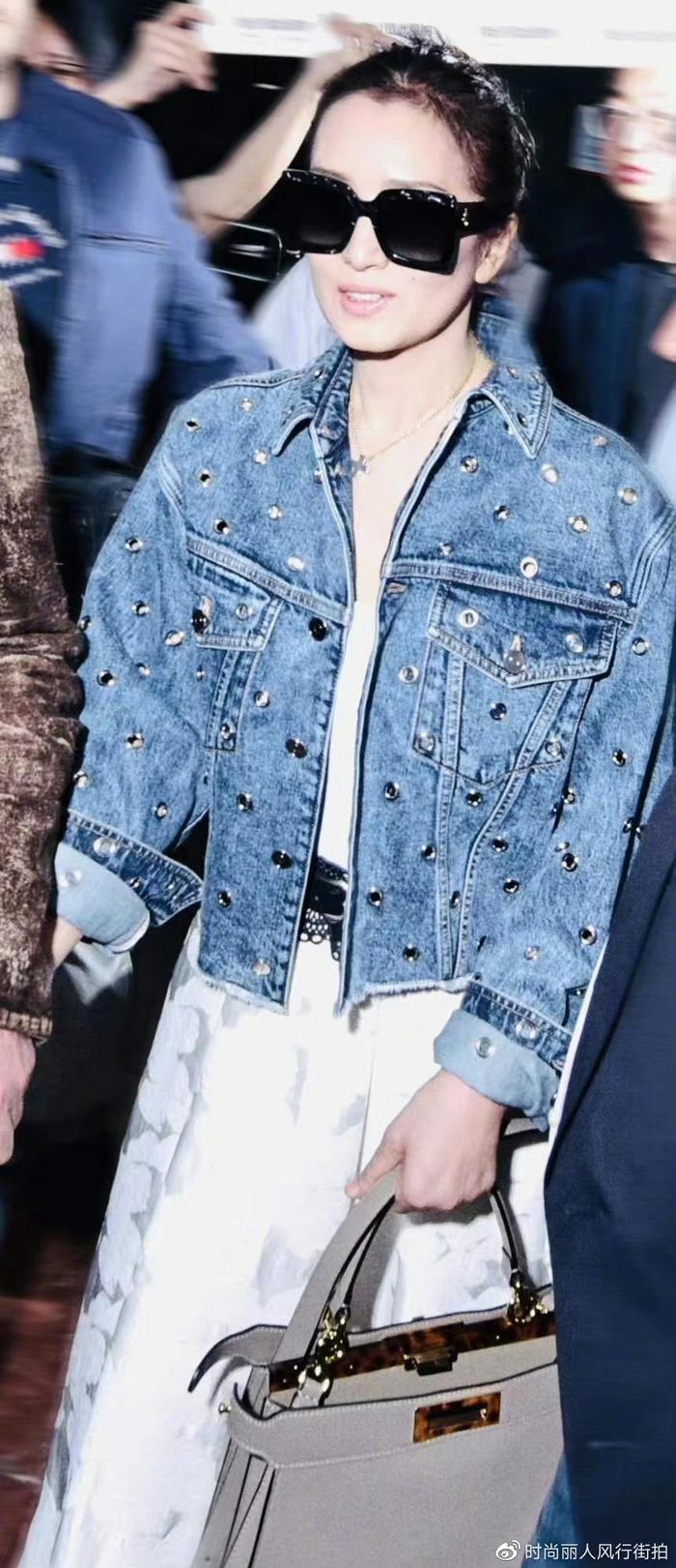 巩俐的气场真是随便穿啥都好看,这身造型让她有了学生的气质,这样的牛仔外套相信很多人都有,而巩俐却穿出了不一般的感觉。铆钉牛仔外套充满着摇滚范,加上白裙带来的那种清纯感,57岁的巩俐真是有着27岁的感觉。