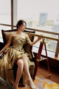 董璇金色抹胸裙复古高贵 朦胧美丽又优雅