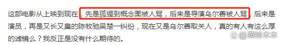 对于乌尔善清空微博的行为,有网友认为他这样搞让合作演员很尴尬,也有网友认为导演本身就有很多黑历史,整个剧组都一言难尽,整这一出可能是 " 卖惨 " 的一环。