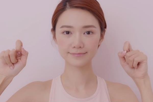 接着将两只手和成正三角形并放在苹果肌的位置,然后轻轻往上提,以拉提苹果肌的线条,防止脸部下垂、老化。