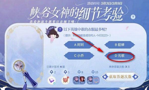 1、以下英雄中谁的衣服最多呢? 答案:D.元歌