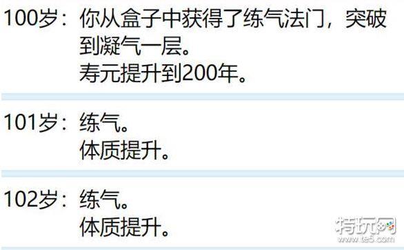 2、然后我们选择神秘的小盒子天赋后,正常进行游戏,等活到一百岁即可激活开启神秘小盒子天赋,正式进入修仙阶段过程了。