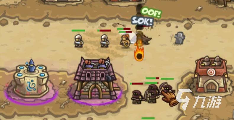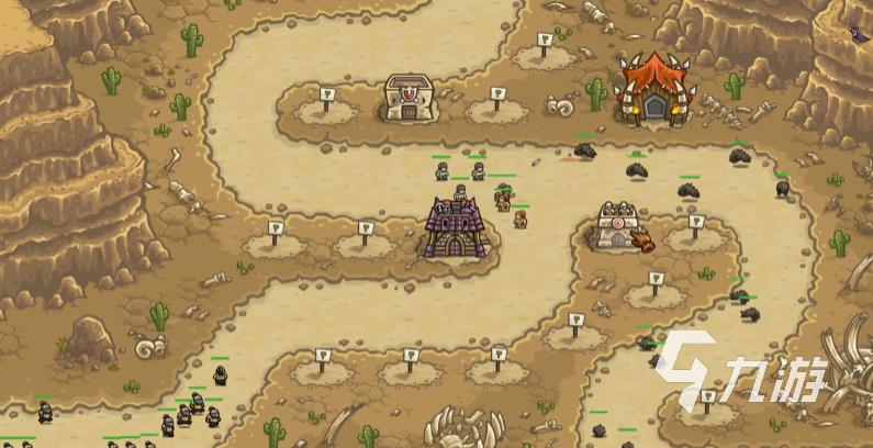 在打完沙中绿洲后会解锁刺客公会与弩兵堡垒则,对玩家来说是强大的助力,弩兵堡垒的射速很快而且范围很广,2技能分别为弹幕、驯鹰者,弹幕是强力的输出技能可以射出一连串的箭矢,驯鹰者则是辅助技能,可以加强自身和附近塔的射程,如果在之前升级的时候将塔的科技点得很高,这一关就可以主造箭塔,性价比很高。此外将兵营放在交火点,如此就可以形成一道明显的防线。