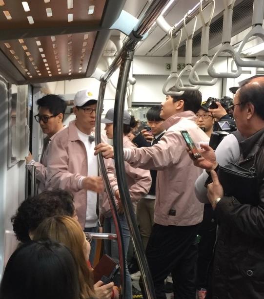 据了解崔民勇、普美和 RM 成员们於当天一起在首尔地铁进行游戏任务,幸运目击的粉丝们都表示没想到会在地铁遇到 RM 和明星们,所以相当兴奋阿,已经在 SNS 上传疯了当时拍摄的认证照片。