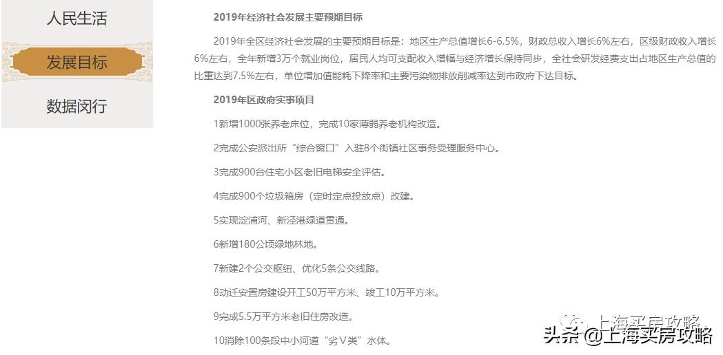 在闵行区政府的官网可以看到,年度发展目标被细分量化,确保了落实执行。