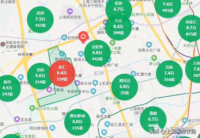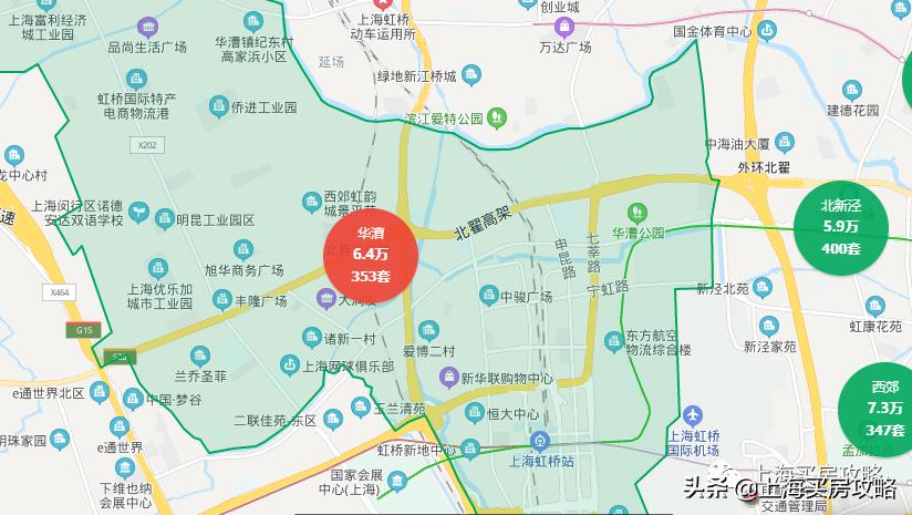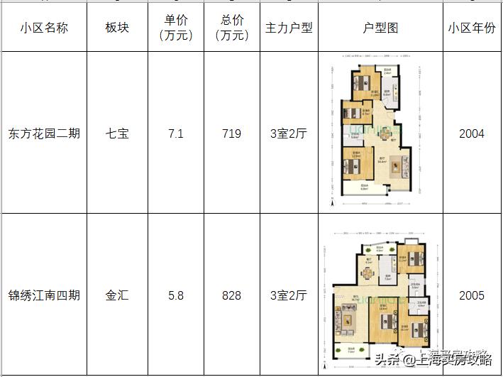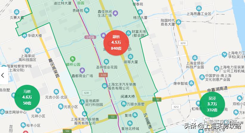 其中也有一些2010年左右的商品房和动迁房,单价在3.5-4万之间,两房总价300万,三房总价400万,是非常适合大虹桥上班人群的上车盘区域。