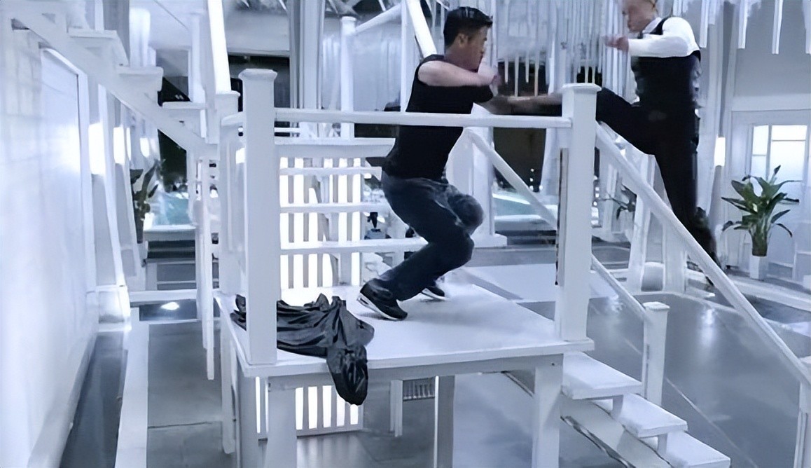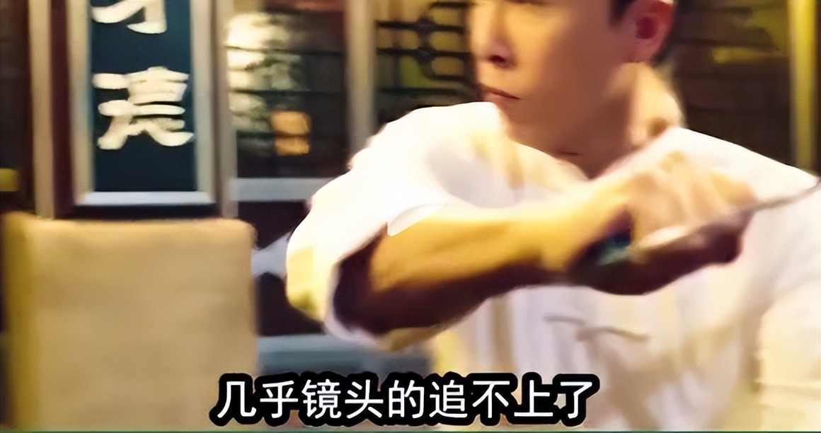 为什么这么说呢?因为当时上头的张晋,提着刀一直从棚左边追杀甄子丹到右边,速度快到镜头都追不上了,可想而知其中的惊险。