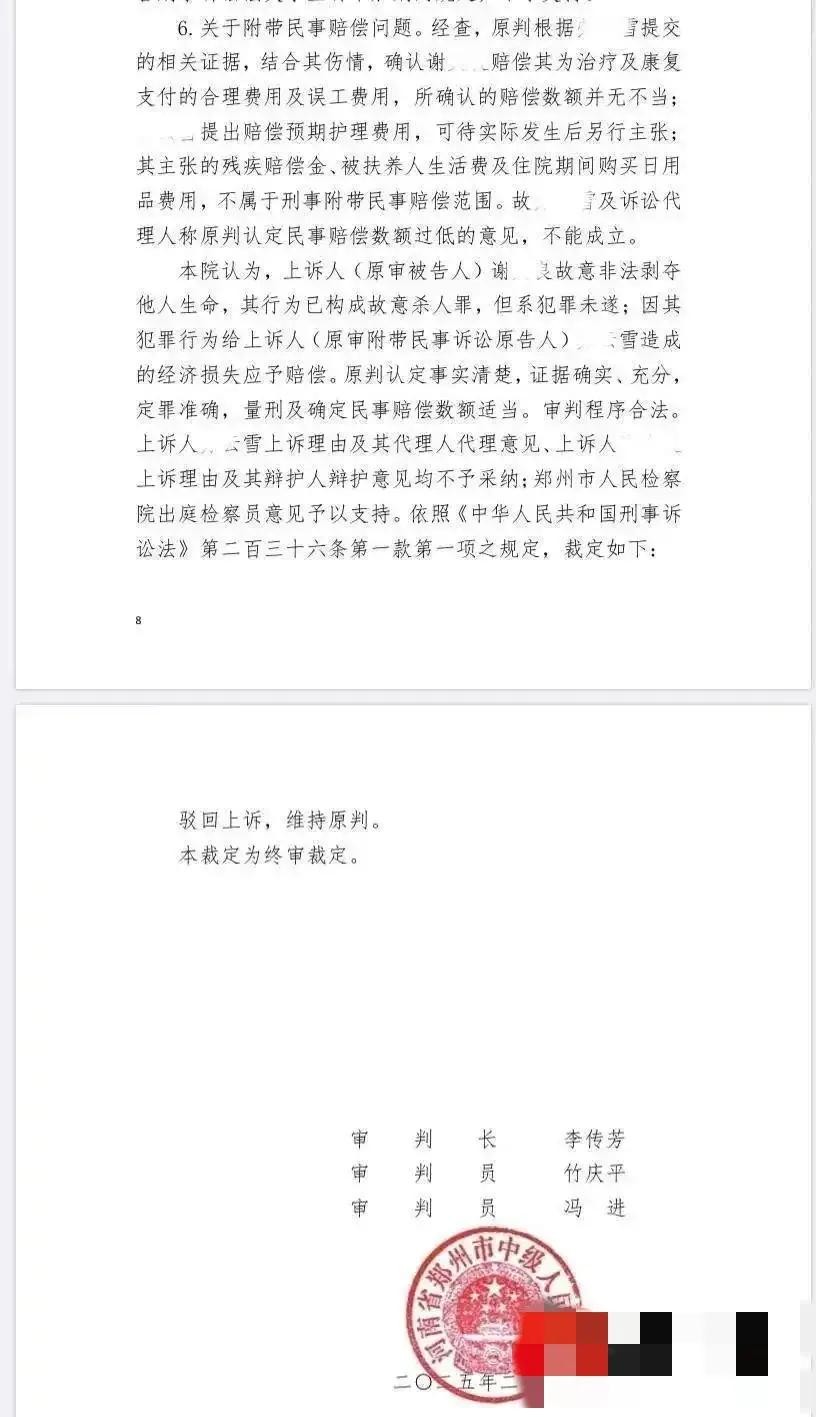 2025年2月,郑州市中级人民法院作出终审裁定:谢某获刑11年,需赔偿小雪65万余元。然而,这个判决又能挽回什么呢?一个29岁姑娘的未来,一个家庭的希望,在这场暴力中已经粉碎。