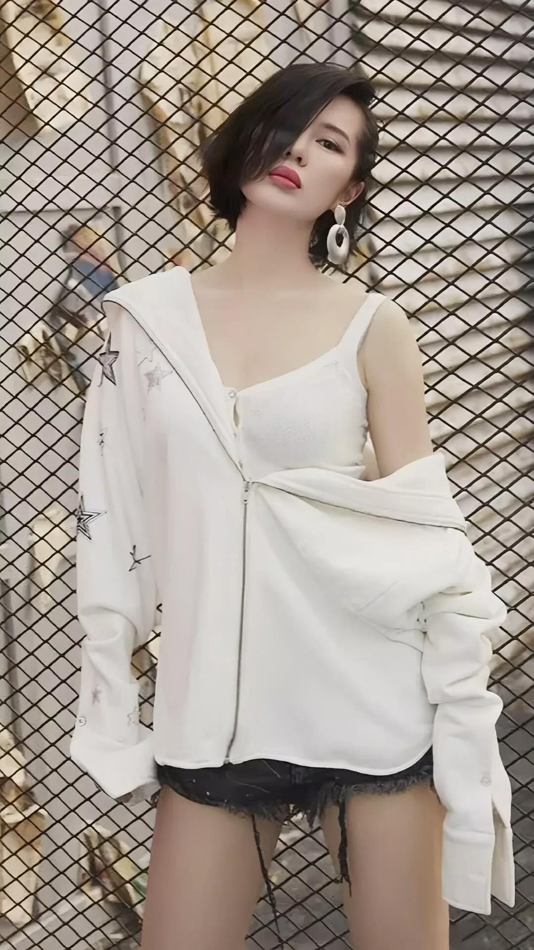 刘美含秋日写真分享格纹纱裙,清丽柔美