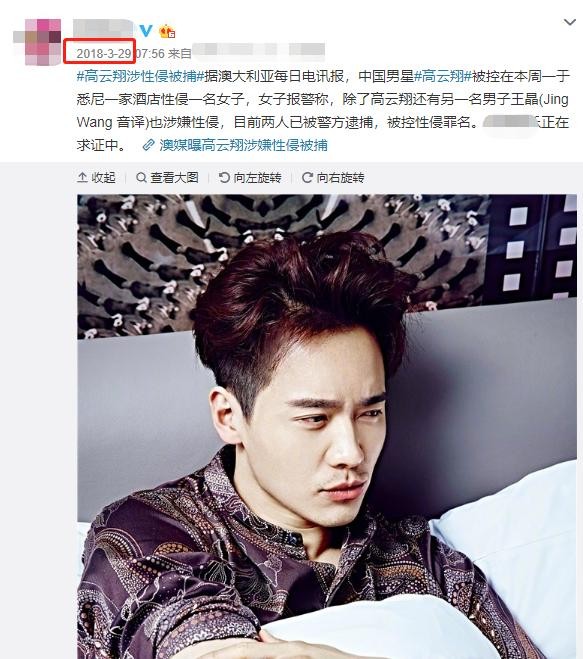 然而这话说完没多久,2018年3月,高云翔就被控告在悉尼一家酒店,性侵他人。