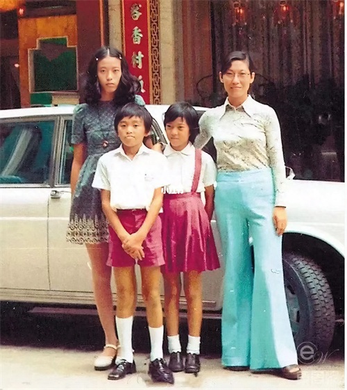 这张照片拍摄于1972年,当时周星驰10岁,全家在一台帅气的汽车前留念。