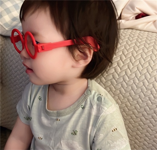 照片里韦壹戴着红色眼镜框,看起来十分可爱,头发细细软软的,穿着跟上次照片一样的淡绿色上衣,这样一来,大家终于能看清韦壹的模样了。她的确跟妈妈蜜蜂仔比较像。