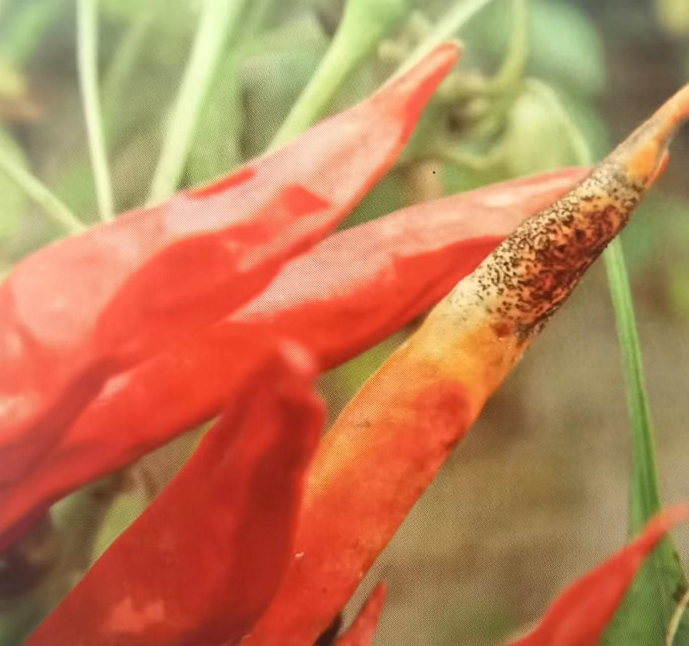 辣椒炭疽病分为黑色炭疽病,黑点炭疽病和红色炭3种。黑色炭疽病在东北、华北、华东、华南、西南等地区都有发生;黑点炭疽病仅发生在折江、江苏、贵州等地。红色炭疽病发生较少,主要危害果实,特别是近成熟期的果实更易发生,也侵染叶片和茎。果实发病,
