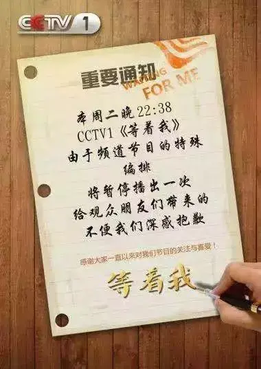 「通知」CCTV1《今世缘·等着我》11月27日播出时间调整