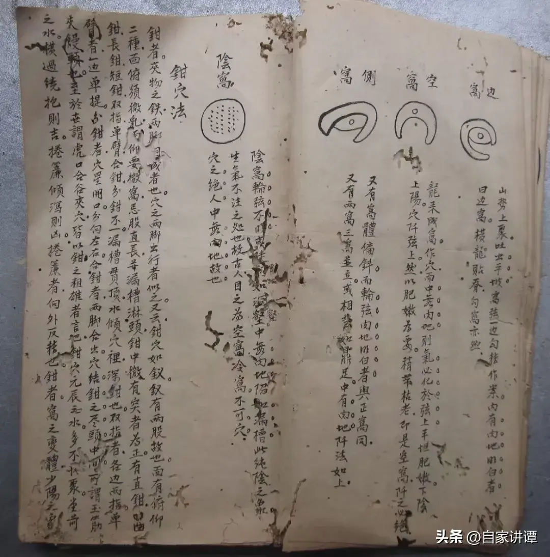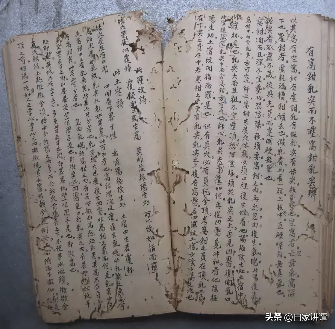 《寻龙点穴秘诀》,明清时期民间抄本古籍,160页面内容,有虫蛀。在古代中国,寻龙点穴是一项深受重视的技艺,传承千年。