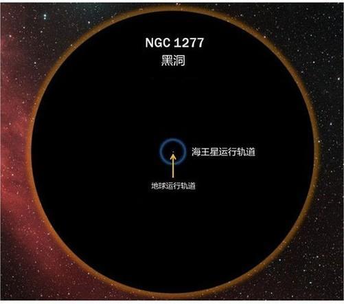 这是一个黑洞对比地球的大小比例图,蓝色的圈是海王星。