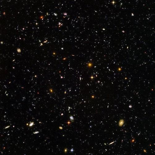 想象下这么巨大的星系里会有什么?只是这个用哈勃望远镜照到的照片里,就有几千个星系,每个星系中又有几百万颗星球,仅是一张照片中…