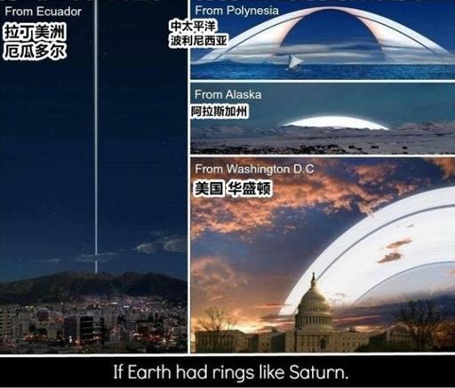是不是很羡慕土星的行星环?但如果地球有了像上图那样的土星环,那么这就是我们在世界各地可以看到的景象。