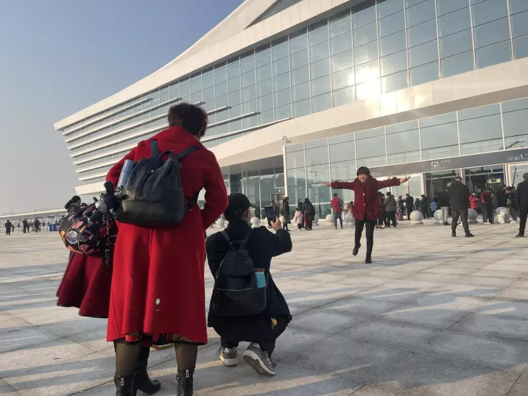 随着复兴号的进站,欢快的音乐随之在站台响起,快闪表演《姑娘的红裙》渲染着此刻的激动与兴奋,正如那翩翩飞舞的裙角,每一抹红色都是溢出唇角的喜悦。