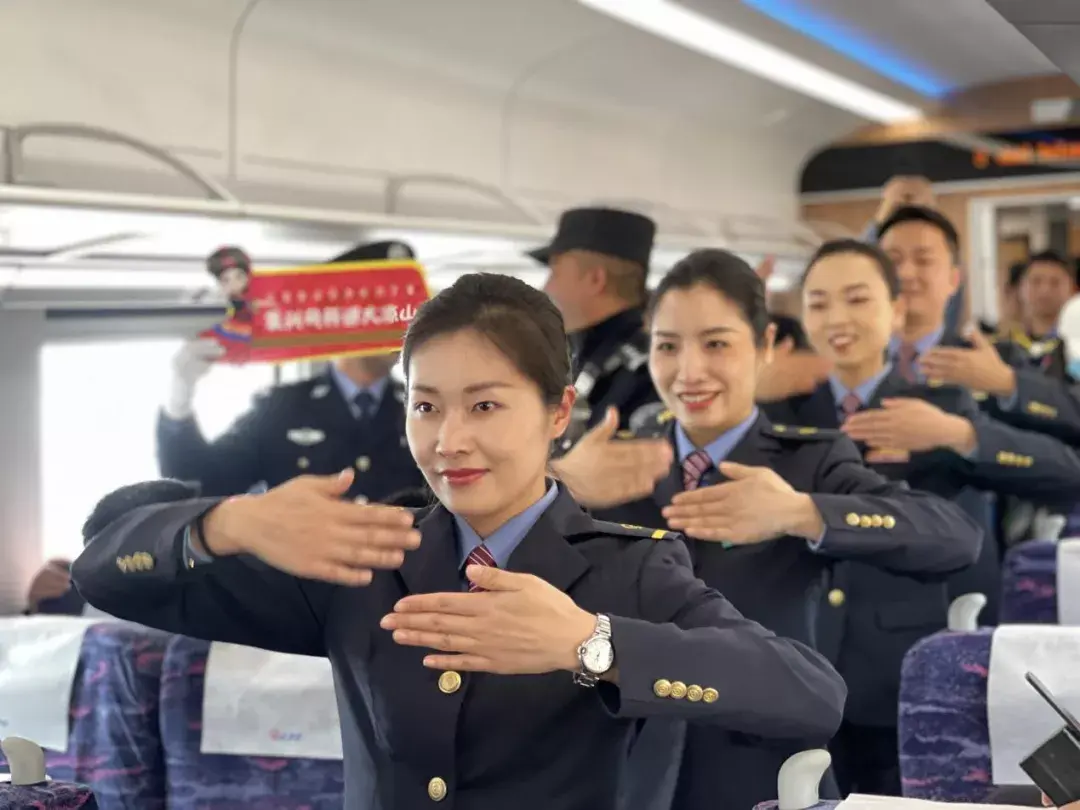 身穿民族服装的列车员带来了《我和我的祖国》《祝酒歌》《微笑操》等精彩的节目,展现了首批乘务人员的风采。