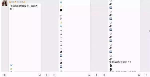 或许最初微信炸群只是玩笑,也可能是群员情绪的发泄而已,但在网络暴力横行的今天,“炸群”一出现,便被快速被网络利用,不少网络流氓直接利用“炸群”威胁群主,索要金钱,而各种论坛上,寻找、求购“炸群”代码、软件的信息也非常多。