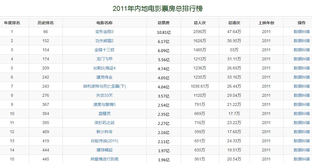 2011年,中国内地电影市场总票房收入是131亿。票房冠军是《变形金刚3》,票房收入是10.81亿。