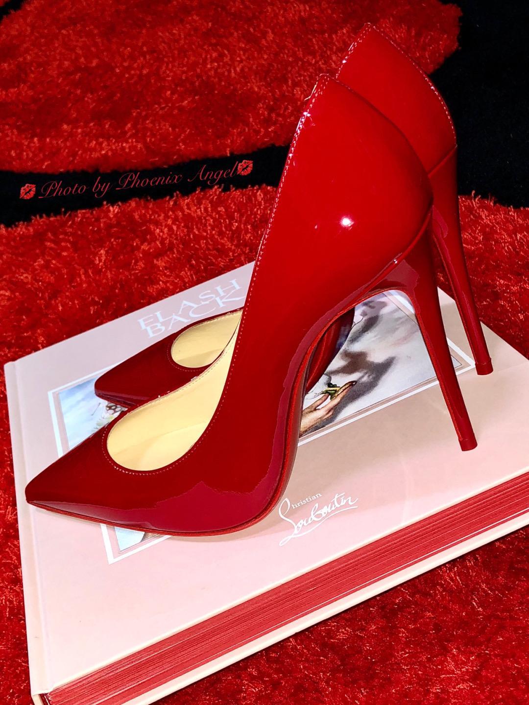 Hot chic系列的红底鞋就不多说了,它的鞋跟高度有13厘米,完全是艺术品的风格,不是为了实穿。这13厘米的鞋跟还是在没有防水台的前提下设计的,鞋跟比起前面的几款更细!所以大家看看就可以了。