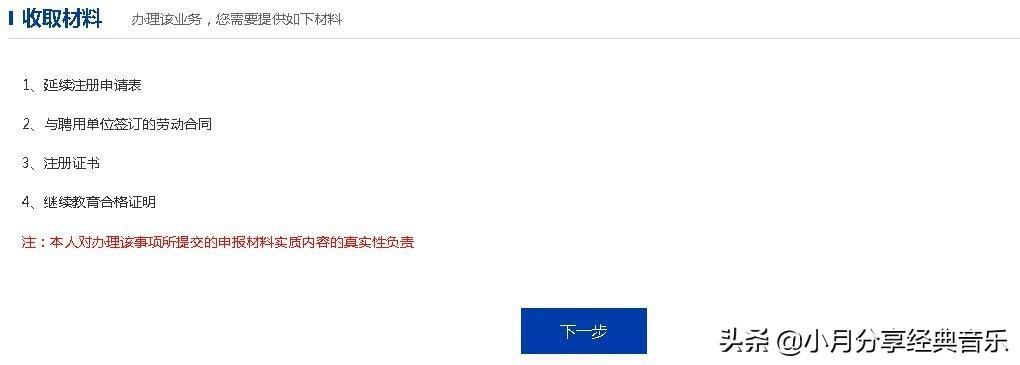 仔细阅读审批条件及收取材料所列事项,满足申请条件的才能进行业务办理,全选后,点击 下一步,如下图: