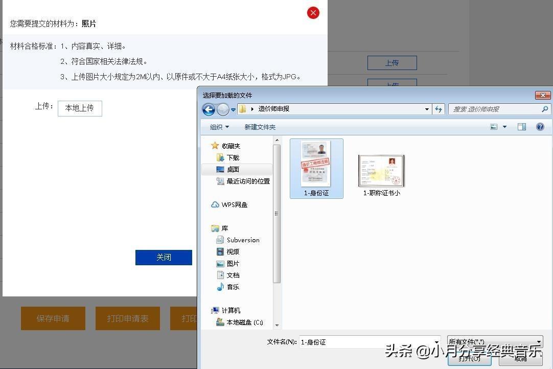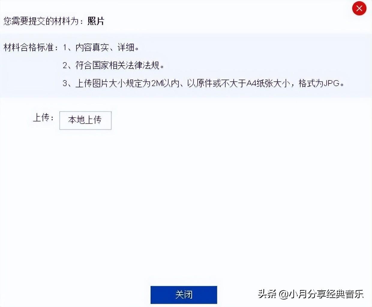 第一步:点击每个文件后的“上传图片”按钮,进入具体上传图片页面,按要求上传图片: