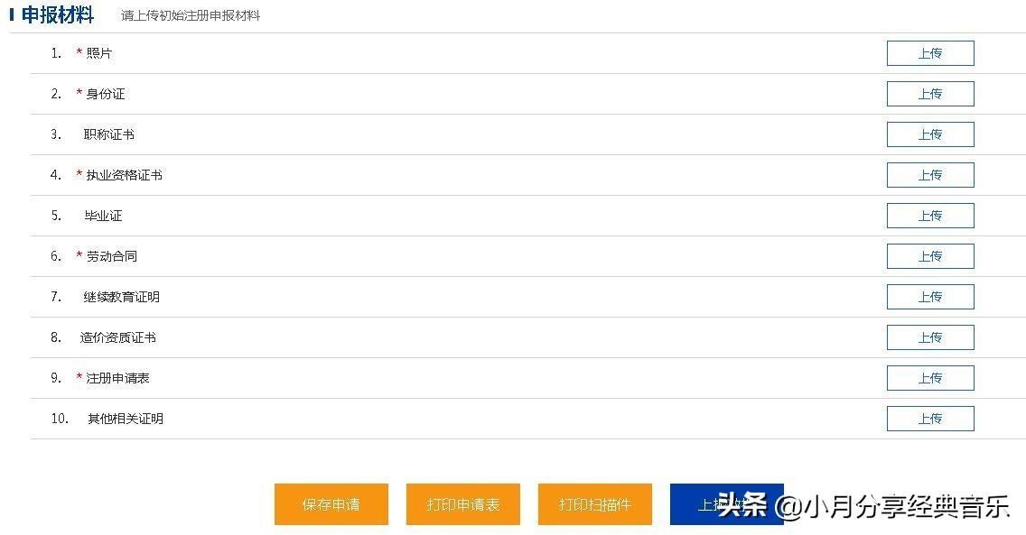 保存申请,打印申请表,将打印的申请表盖章后,上传至系统,并再次保存申请。信息填写无误,扫描件都上传完成后,可以上报数据。公示期内,可以查看不合格原因,可对问题进行补正,在【上报业务查询-操作】中进 行操作。待住建部审批公告结果后,返回数据,初始注册完成。如初始注册未通过的,数据及不合格原因将打回到个人申报系统,可按上述操作程序 重新申报注册。