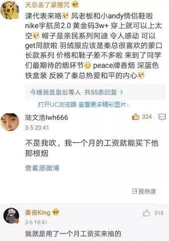 网友留言称,“自己一个月的工资才能买他那一根烟”,而秦奋看到跟网友互动戏称,“自己就是用一个月工资买来抽的”即亲民又展现出他的豪。