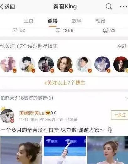 秦奋在喜哥的微博动态下点赞最多,两人还一起去日本旅行,发微博背后的风景都是一样的。
