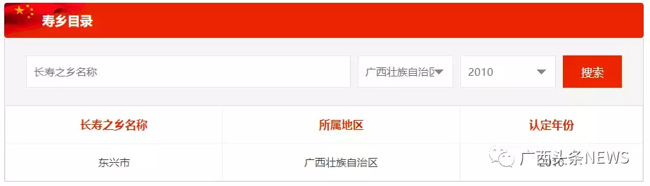 图为官网截图。广西2010年获评“中国长寿之乡”名单。