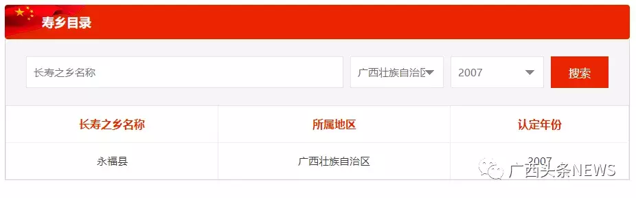 图为官网截图。广西2007年获评“中国长寿之乡”名单。