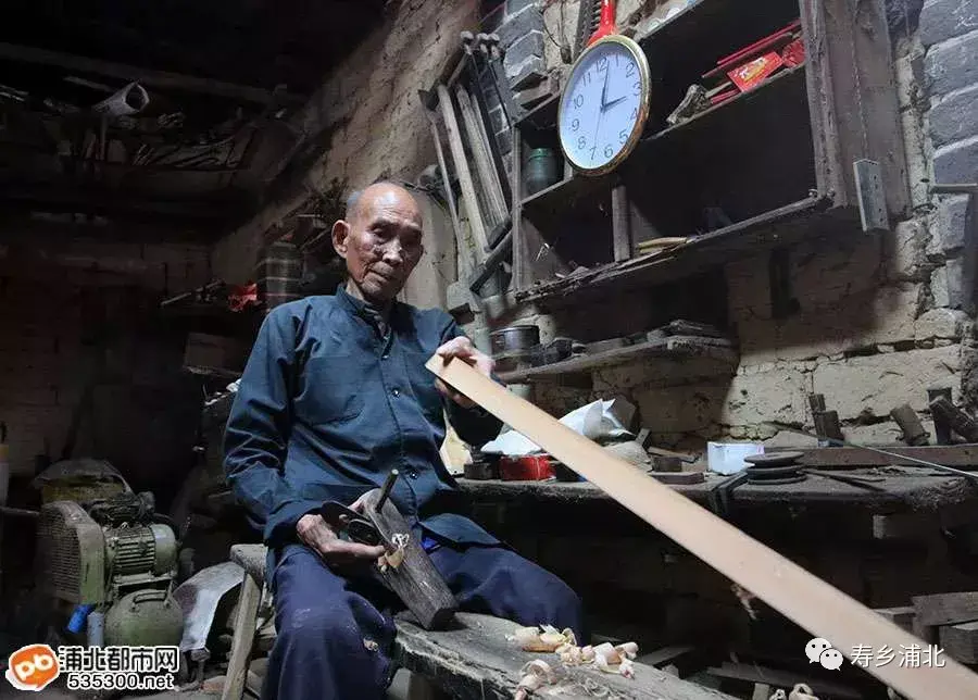 图为浦北县白石水镇百岁长寿老人施春林仍坚持做木匠活。