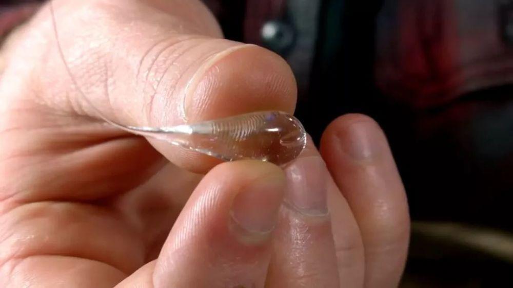 相传在17世纪时,一位名叫“鲁伯特”的王子发明出此物并将其作为贵重的礼物赠予国王,由于它的形状像一滴被拉长了的眼泪,因而得名“鲁伯特之泪”。大家一定会觉得,这么神奇的玻璃,在那个生产设备落后的年代制作起来一定很困难吧?其实,鲁伯特之泪的制作方法并不难,将通过高温加热而熔化的普通玻璃靠重力自然滴到冷水中,这滴玻璃滴会迅速冷却凝固,形成一个头部偏大、尾巴纤细,形似蝌蚪状的玻璃泪滴。通过这样的方法,就可以得到一颗头部能在八吨压力下不碎,硬度比金刚石还大的“鲁伯特之泪”了。是不是只有玻璃能形成鲁伯特之泪?