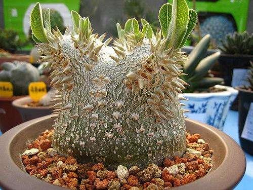 这是夹竹桃科的多肉植物,因为它的根茎不规则的膨大,外皮是褐色或者是灰色,有不规则的凸起和皮刺,叶柄直接生于根茎突出的部分,样子奇特,耐干旱比较怕积水也比较耐寒。