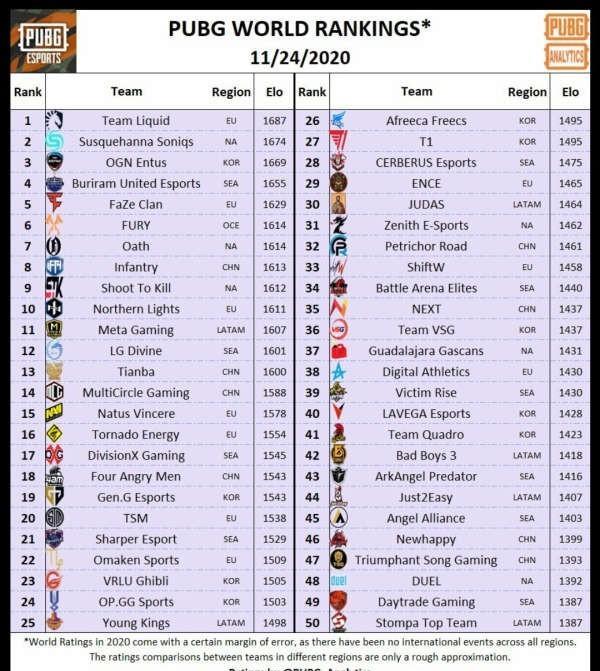 前三没有PCL队伍,fity拉闸掉到第八,液体登顶,另外蓝洞以当地旅游限令为借口未邀请澳大利亚FURY战队的排名第六