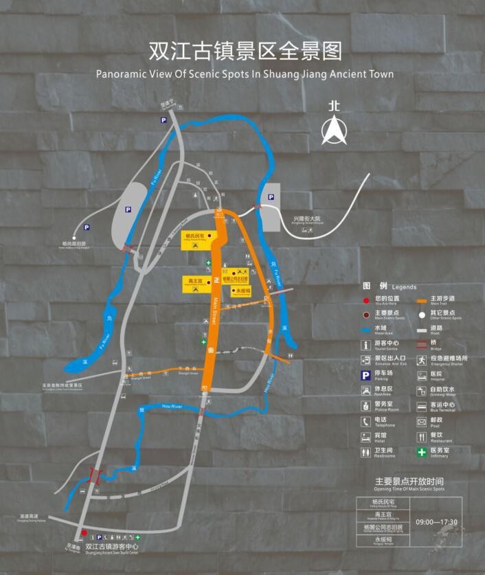 兴隆街大院 位于猴溪对岸,建于1895年,占地面积2000平方米,为木质穿斗结构建筑。面阔5间3进,门窗、隔扇、垂柱、斜撑、屋脊雕饰精美、保存完好,今为双江镇中学办公用房。