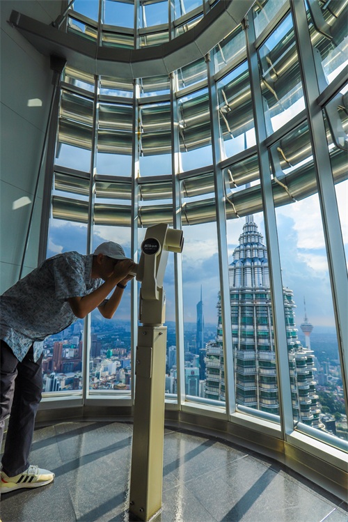 在这里,我能够俯瞰整个城市,感受到高空中的惊险和震撼。我也能看到远处的山脉和郊区,这让我更加欣赏吉隆坡的美丽和宏伟。