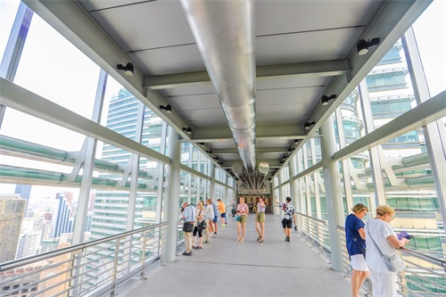然后我乘坐电梯到达86层的Skybridge,这是两座塔之间的桥梁,长约58米,是世界上最高的双层桥梁。