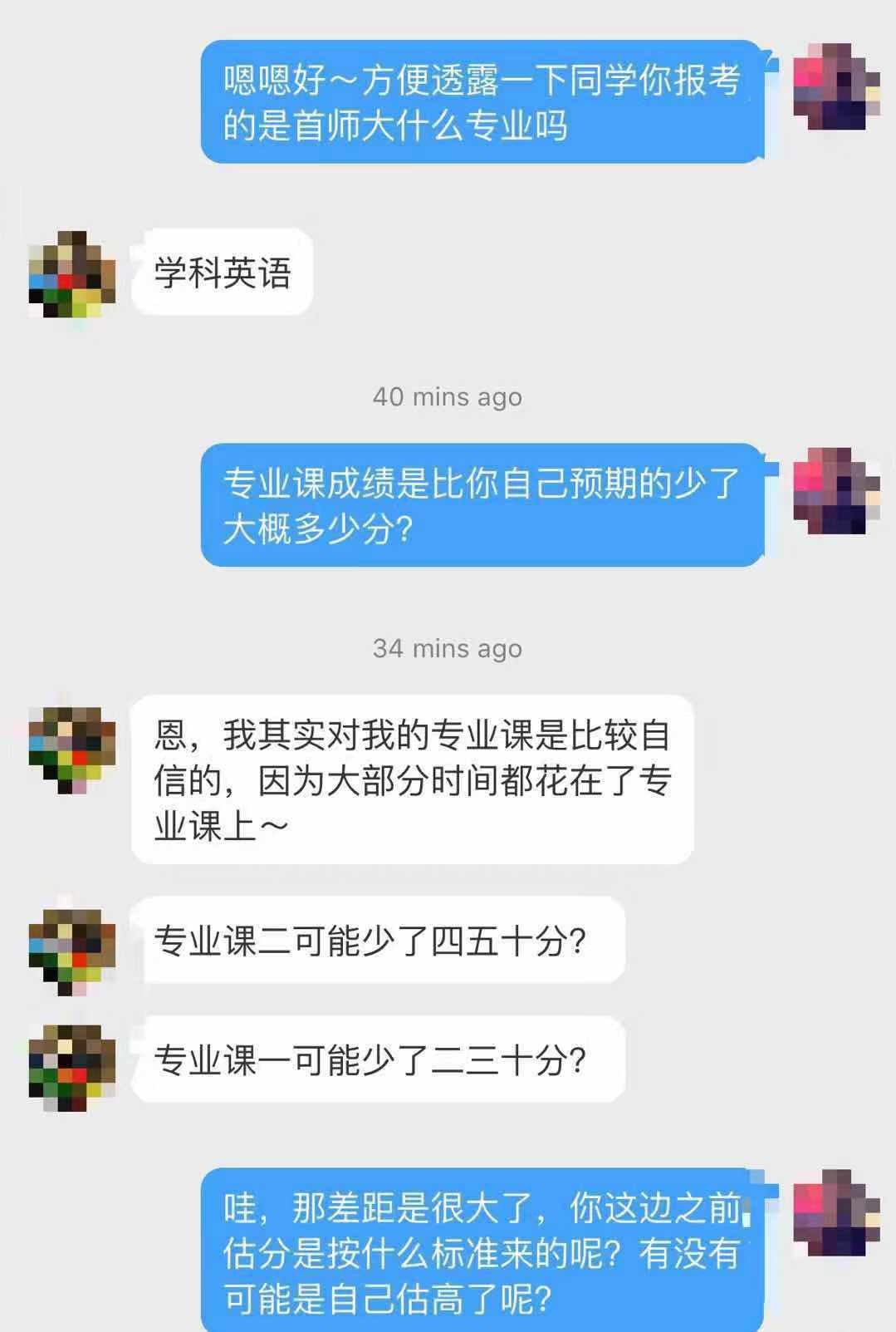 东方网·纵相新闻记者微博私信采访了一位今年报考首都师范大学英语学科研究生的同学。这位同学表示对考研结果非常失望,自己不怕查卷子,甚至可以说出考点在笔记的哪一页,不信成绩会比自己预估的少了几十分。