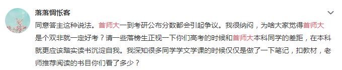 同时网上也有一些网友发出不同声音,认为北上广的高校本来就是旱区,报考的考生多,因此会适当压分以控制人数,况且压分又不是针对一个人,大家都压分了,这相对来说,还是公平的。“同样的判卷标准,那别人怎么就能考高分?”甚至有人质疑,网上这么多骂首师的,可能也存在一些是在为自己考研失败找借口,让自己好受点。