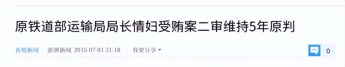 澎湃新闻:原铁道部运输局局长情妇受贿案二审维持5年原判
