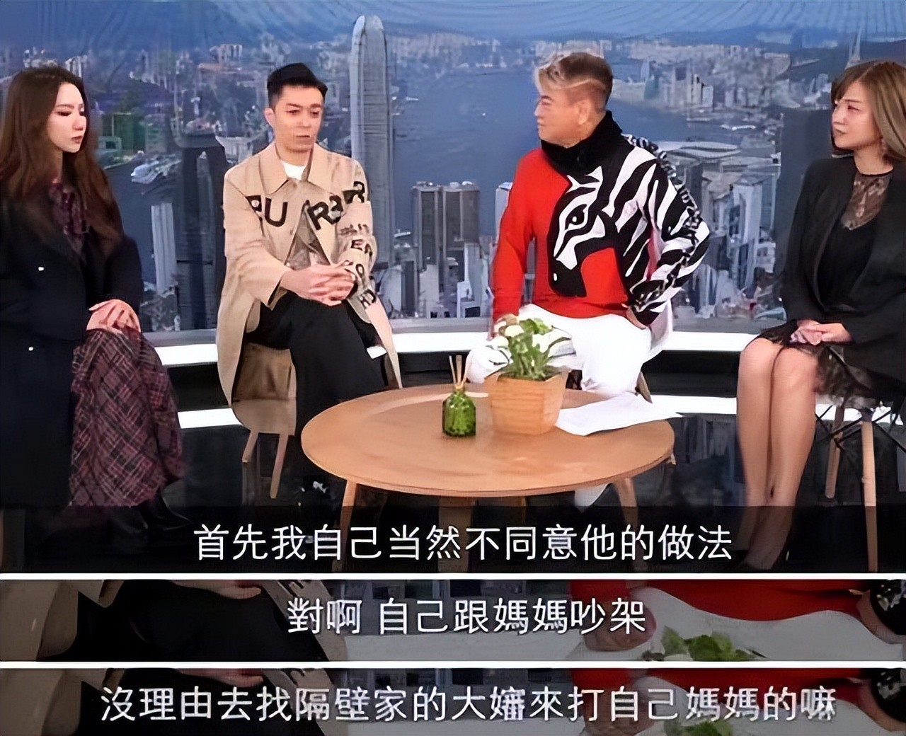 其次,周柏豪巧妙地用了一个比喻句“自己和妈妈吵架,没理由要去找隔壁的大婶来打自己的妈妈。”