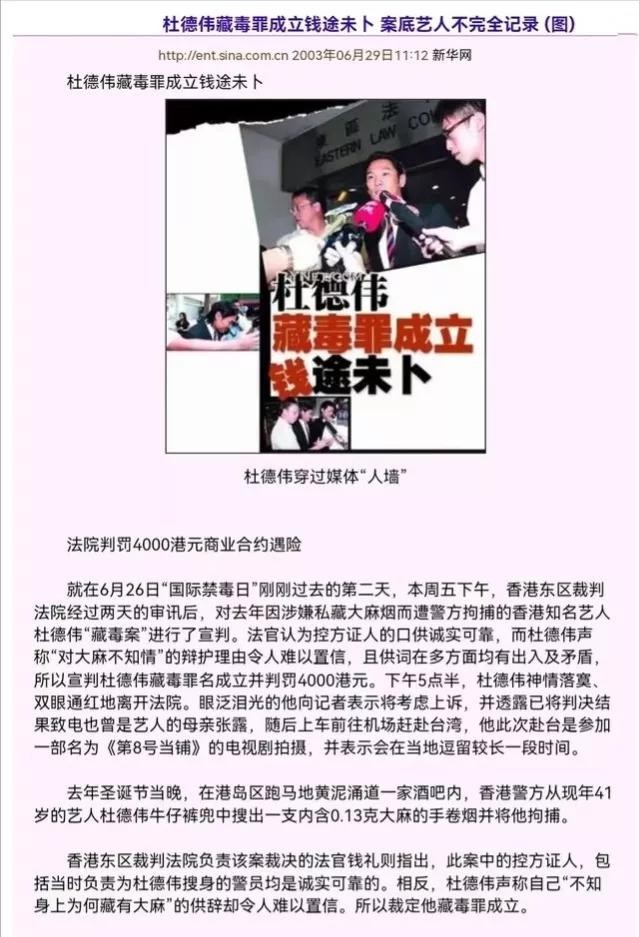 杜德伟在2003年因为藏毒罪名成立星途就此凉凉,但此事过去已将近20年,很多人都选择了淡忘。