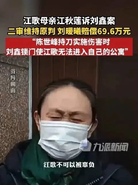 2022年12月30日,山东省青岛市中级人民法院对江秋莲与刘鑫生命权纠纷案作出二审判决:驳回上诉,维持原判,刘鑫需赔偿江母69万余元。