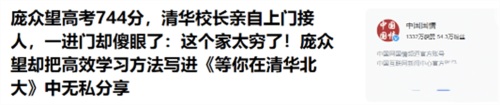考上清华大学后,庞众望的事迹也在全国迅速发酵,越来越多的人注意到了他,并提出想要出钱资助他上学。